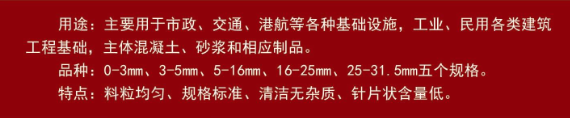 骨料产品:0-3mm、3-5mm、5-16mm、16-25mm、25-31.5mm