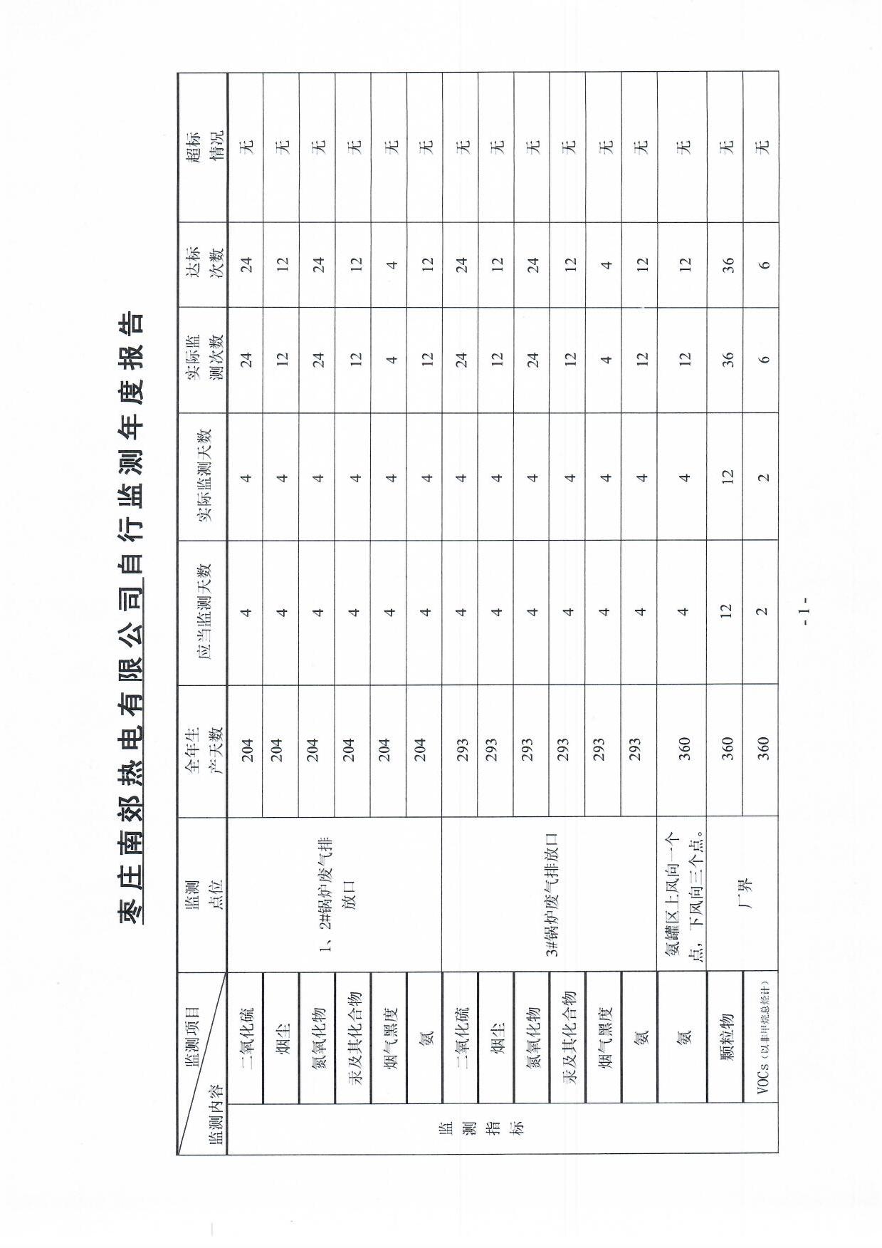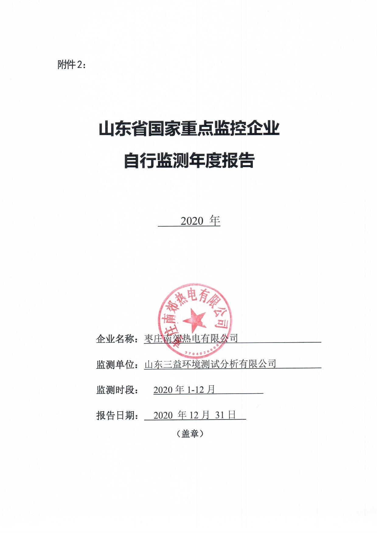 枣庄南郊热电有限公司2020年自行监测年度报告